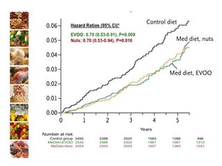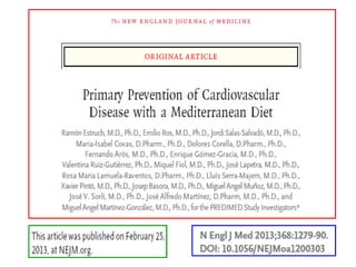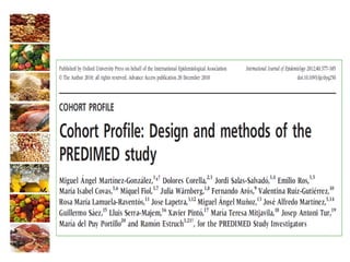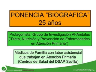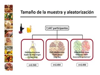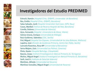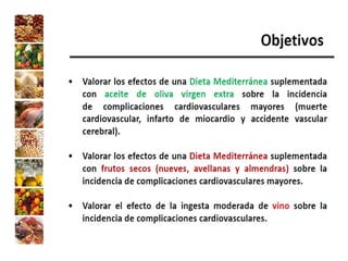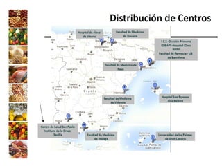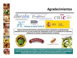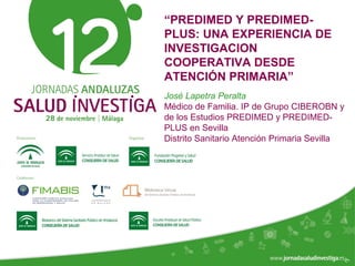 El documento presenta la experiencia del grupo de investigación Al-Andalus en relación con los estudios Predimed y Predimed-Plus, que se centran en la efectividad de la dieta mediterránea en la prevención de enfermedades cardiovasculares. Describe la evolución histórica del grupo, sus líneas de investigación y la financiación recibida, así como resultados clave y publicaciones científicas. Además, se discuten los objetivos y metodología del estudio Predimed-Plus, que busca evaluar el impacto de intervenciones intensivas en el estilo de vida para reducir el riesgo cardiovascular en pacientes con sobrepeso y obesidad.