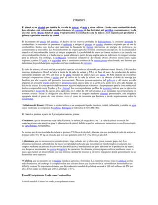1. El etanol se produce principalmente a partir de la caña de azúcar, el maíz y otros cultivos, y se usa como combustible para reducir el consumo de combustibles fósiles contaminantes.