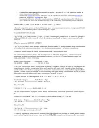 3. El etanol se usa principalmente como combustible ya sea solo o mezclado con otros combustibles, y también tiene usos en industrias y bebidas alcohólicas.