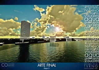 El documento describe un proyecto de desarrollo urbano que se estructura en base a una graduación formal y visual a través de la morfología y ubicación de los volúmenes, vegetación y circulaciones. El proyecto considera la vista desde el otro lado del río para generar una imagen de reflejo en el agua.