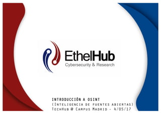 Este documento introduce OSINT (Inteligencia de fuentes abiertas) y describe su proceso en 5 fases. Explica que OSINT se refiere a la inteligencia obtenida de fuentes de información pública y gratuita como Internet. Luego detalla varias herramientas OSINT en línea como buscadores y bases de datos, así como software como Maltego y TheHarvester que automatizan la recopilación y análisis de datos.