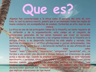 El documento presenta una introducción a los conceptos de ética y moral. Explica que la ética es una rama de la filosofía que estudia las valoraciones generales de los seres humanos que viven en sociedad mediante la reflexión y argumentación. La moral se refiere a los juicios sobre el bien y el mal que dirigen la conducta humana a través de normas. La ética, por otro lado, es una reflexión sobre la moral que cuestiona los fundamentos y legitimidad de las normas morales.