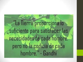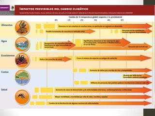 El documento habla sobre la ética ambiental y el cambio climático. Explica que los problemas ambientales también son problemas sociales y que debemos pasar de un enfoque egocéntrico a uno ecocéntrico. Además, destaca que los servicios ecosistémicos son el recurso más valioso y que el cambio climático, causado por la actividad humana, está provocando un aumento de la temperatura, deshielo y cambios en los patrones de lluvia con graves consecuencias.