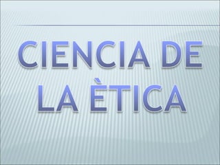El documento resume los conceptos fundamentales de la ética, incluyendo su definición, objetivos y relación con otras ciencias. Explica que la ética estudia los juicios de valor y la acción humana, y se ocupa de establecer principios sobre lo que es correcto e incorrecto. También describe los diferentes enfoques éticos como la aristotélica y la kantiana.