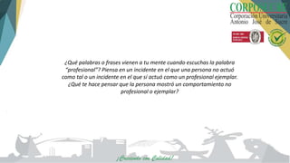 El documento discute la ética profesional y el concepto de profesionalismo, describiendo cómo los estándares éticos guían el comportamiento en entornos laborales. Se menciona que los profesionales deben ejercer autonomía y mantener altos estándares morales, con el compromiso de servir al bienestar público. La ingeniería se presenta como una profesión que requiere habilidades especializadas para influir en el bienestar de la sociedad.