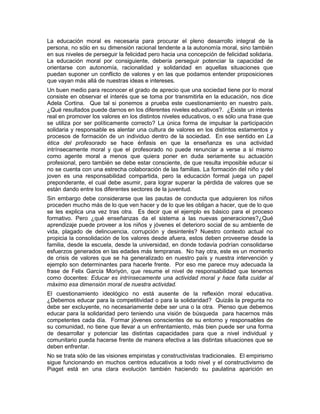 1. El documento presenta diferentes perspectivas sobre ética y educación de varios autores. Aborda temas como la moralidad, valores mayas, y la necesidad de una educación basada en la solidaridad. 2. Se destaca la "regla de oro" de no hacerle a otros lo que no quieres para ti, y los valores mayas de vivir en armonía con la naturaleza y con una visión espiritual y respetuosa del universo. 3. Finalmente, se enfatiza la importancia de educar para la solidaridad y la responsabilidad social,