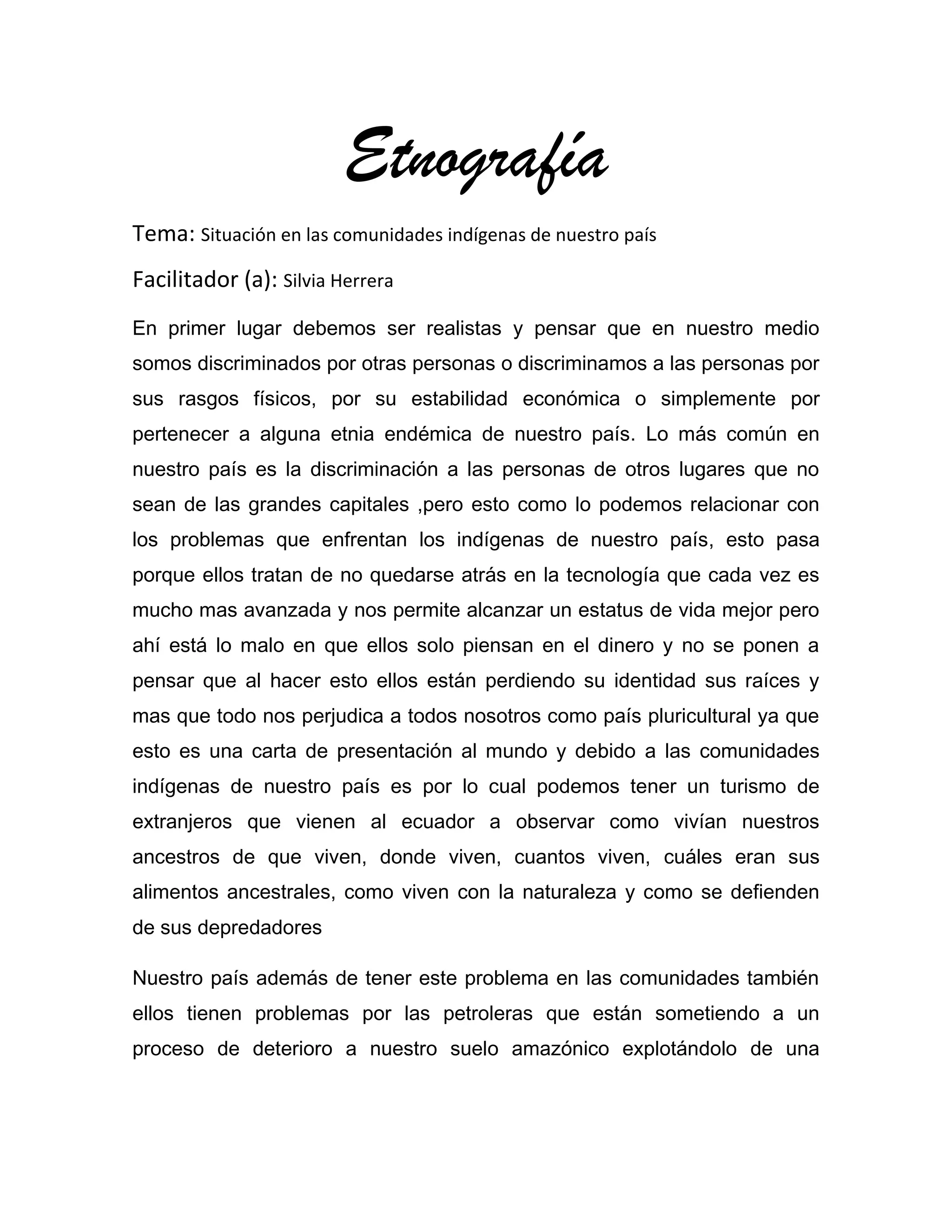 Las comunidades indígenas en Ecuador enfrentan varios problemas, incluyendo discriminación, pérdida de identidad cultural al adoptar tecnologías avanzadas, daño ambiental causado por compañías petroleras, altos niveles de pobreza debido a falta de empleo, y acceso limitado a educación y servicios de salud de calidad. Además, las niñas indígenas tienen menos acceso a la educación. Estos problemas se deben principalmente a falta de recursos y apoyo técnico y de desarrollo para las comunidades.