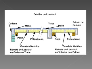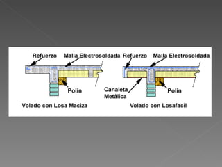 El sistema LOSAFACIL consiste en una losa nervada formada por perfiles metálicos laminados, placas de poliestireno y varillas de refuerzo, recubierta por una membrana de concreto reforzado. Este sistema es económico