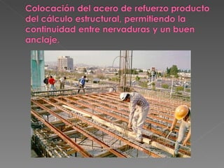 Los joist son elementos estructurales de acero en forma de vigas de alma abierta que soportan cargas de entrepisos o cubiertas ligeras. Pueden salvar grandes distancias con poco peso y deflexión. Se fabrican con uniones estándar que facilitan el montaje.
