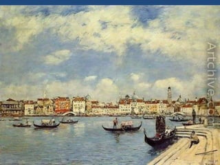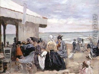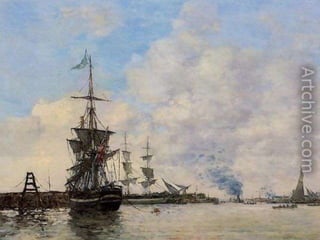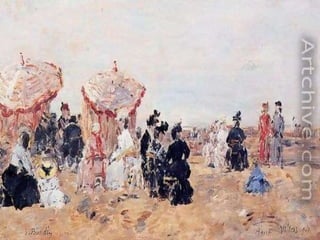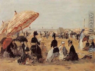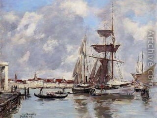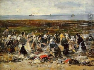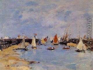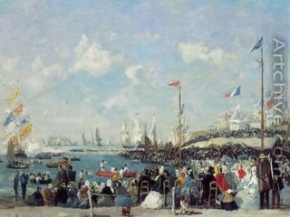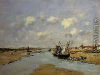 Eugene Boudin fue un pionero paisajista francés que pintaba al aire libre, especialmente paisajes marinos de la costa de Normandía, donde nació e hijo de un piloto. Trabajó inicialmente como ayudante de a bordo en el estuario del río Sena, lo que le permitió estudiar la naturaleza que luego plasmó en su obra.