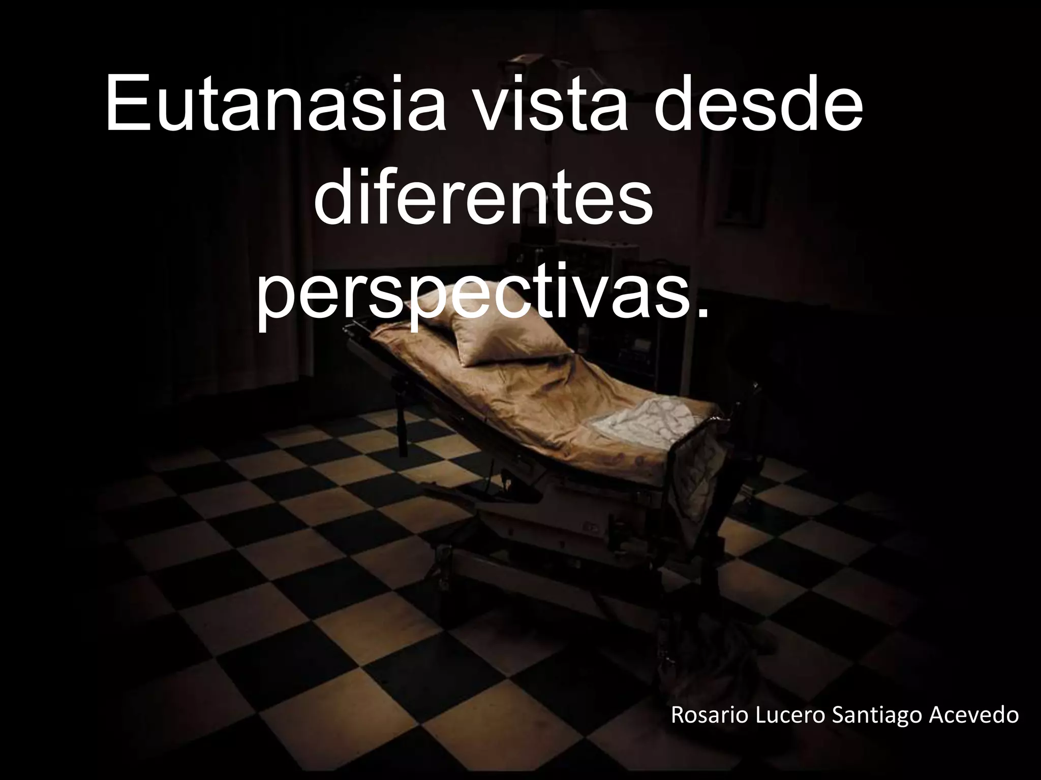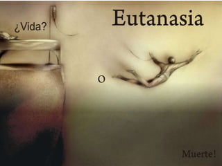 El documento resume diferentes perspectivas sobre la eutanasia. Se argumenta que el paciente debe tener derecho a decidir sobre su propia vida y muerte debido a que es quien experimenta el dolor. Sin embargo, otros señalan que la eutanasia va en contra de las leyes divinas y puede generar tensión psicológica en la familia. La legislación mexicana actual solo permite la eutanasia pasiva.