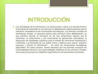 Este documento describe las características de un Entorno Virtual de Aprendizaje (EVA). Explica que un EVA es un espacio educativo alojado en la web que permite la interacción didáctica a través de herramientas tecnológicas. Detalla que un EVA es un ambiente electrónico accesible a través de Internet que permite el aprendizaje sin necesidad de coincidir en el espacio o tiempo. También identifica algunas desventajas como la necesidad de capacitar docentes y comprometer a los estudiantes.