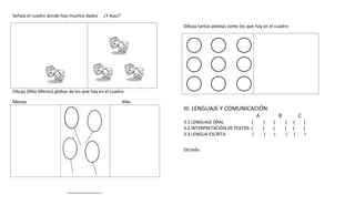 Este documento presenta una evaluación pedagógica para estudiantes de educación preescolar. La evaluación cubre cinco áreas principales: sensopercepciones, pensamiento matemático, lenguaje y comunicación, y desarrollo psicomotor. Dentro de cada área, se evalúan diferentes habilidades y se asignan calificaciones de A, B o C para indicar el nivel de desarrollo del estudiante. La evaluación inicial se comparará con una reevaluación final para medir el progreso del estudiante.
