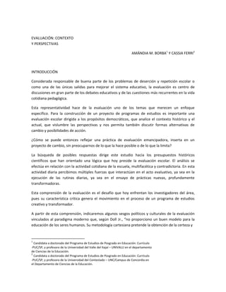 Este documento presenta un resumen histórico del desarrollo de la evaluación educativa. Comienza describiendo las primeras generaciones de evaluación en el siglo XX, que se centraban en la medición de habilidades y aptitudes de los estudiantes. Luego describe la segunda generación en la década de 1930, influenciada por los trabajos de Tyler, que introdujo la evaluación por objetivos. Finalmente, describe la tercera y cuarta generación en las décadas posteriores, que buscaron superar las limitaciones anteriores y enfatizaron el juicio de