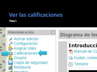 Este documento describe los pasos para calificar actividades y generar informes de calificaciones en Moodle. Incluye opciones para seleccionar grupos, mostrar retroalimentación, calificar rápidamente, guardar calificaciones y comentarios, visualizar informes de calificaciones y exportarlos e importarlos.