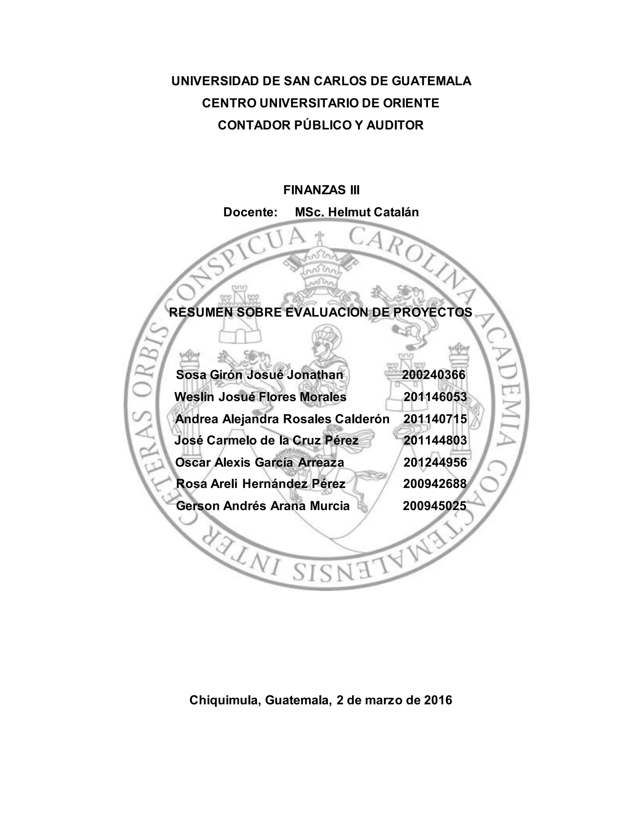 El documento presenta una discusión sobre la importancia de la evaluación de proyectos como herramienta para la optimización de recursos. Señala que al evaluar proyectos se busca conocer aspectos clave como el estudio de mercado, estudio económico y estudio financiero para asegurar que se resuelva una necesidad de manera eficiente, segura y rentable. También indica que la evaluación de proyectos permite comparar costos y beneficios para decidir cuál es la mejor alternativa considerando factores como la inflación.