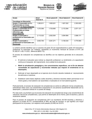 1. Explica que la carrera docente se basa en la meritocracia y cuenta con cuatro momentos de evaluación, incluyendo la evaluación anual de desempeño y la evaluación de competencias para ascensos y reubicaciones salariales.