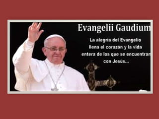 Este documento presenta la exhortación apostólica "La Alegría del Evangelio" del Papa Francisco. Resume los cinco capítulos clave que tratan sobre la transformación misionera de la Iglesia, los desafíos que enfrenta el mundo actual, la invitación a renovar el encuentro personal con Cristo, y la necesidad de avanzar hacia una evangelización descentralizada que lleve la alegría del Evangelio a todos.