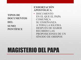 Este documento es una exhortación apostólica del Papa Francisco dirigida a toda la Iglesia tras un sínodo de obispos. En ella, el Papa invita a los cristianos a renovar su encuentro con Jesucristo y a participar en una nueva etapa evangelizadora marcada por la alegría del Evangelio. Aborda temas como la reforma de la Iglesia para una mayor salida misionera, las tentaciones de los agentes pastorales, el papel de todo el Pueblo de Dios en la evangelización y la necesidad de