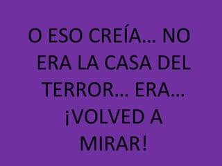 Evarista entró en un castillo con espejos deformantes y al tocar uno fue absorbido por él, flotando a través de un túnel hasta aparecer en el mismo castillo pero nuevo. Al mirarse en un espejo, vio que ya no era el mismo, sino que parecía haber viajado en el tiempo a un período en el que los castillos eran nuevos.