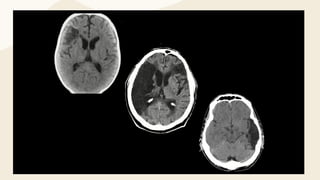 Este documento describe la enfermedad cerebrovascular isquémica. Explica el cuadro clínico, la anatomía patológica, la zona de penumbra y la hora de oro. También cubre las imágenes de TC e IRM, incluidos los hallazgos en las diferentes etapas aguda, subaguda y crónica. Finalmente, resume las referencias clave y los créditos.