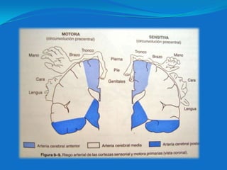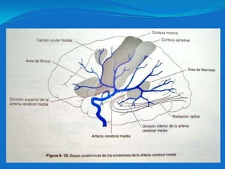 Este documento define el accidente cerebrovascular (ACV), describe su epidemiología y factores de riesgo. Explica la clasificación de los ACV en isquémicos u hemorrágicos. Detalla la fisiopatología, síntomas, diagnóstico y tratamiento de los ACV. Resalta que los ACV son una de las principales causas de muerte en México y su tratamiento incluye prevención, control hemodinámico y tratamiento sintomático.