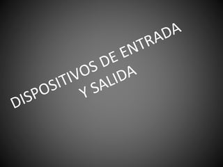 Este documento describe varios dispositivos de entrada y salida comunes para computadoras. Los dispositivos de entrada mencionados incluyen teclados, ratones, joystick, lápices ópticos, micrófonos, cámaras web, escáneres y escáneres de código de barras. Los dispositivos de salida descritos son monitores, altavoces, auriculares, impresoras, plotters y proyectores. También menciona unidades de almacenamiento como CDs, DVDs y discos flexibles, así como módems y