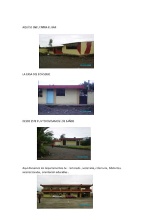 Este documento contiene evidencias de 7 prácticas pedagógicas realizadas por estudiantes maestros. En la práctica 1 se colaboró con una maestra orientadora revisando tareas de estudiantes. Las prácticas 2 y 3 incluyen descripciones de recorridos por instalaciones escolares y observaciones de lecciones en aulas. La práctica 4 involucró socialización y las prácticas 5, 6 y 7 presentaron exposiciones y socializaciones de los grupos.