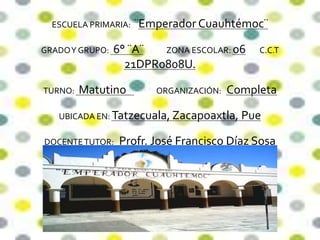 El documento describe la práctica profesional de un estudiante de la Licenciatura en Educación Primaria en la Escuela Normal Particular 'Profr. Raúl Isidro Burgos'. Se detalla la organización y actividades implementadas durante su práctica, incluyendo videos educativos y actividades interactivas en diversas materias. El enfoque principal fue fomentar la participación activa de los alumnos en su aprendizaje.