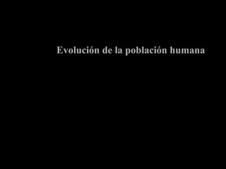 El documento resume la evolución de la población humana a lo largo de la historia, indicando que hace 1 millón de años había 125,000 personas en África, hace 300,000 años había 1 millón de personas que ocupaban Eurasia, y hace 10,000 años había 5 millones de personas que ya habitaban todo el mundo.