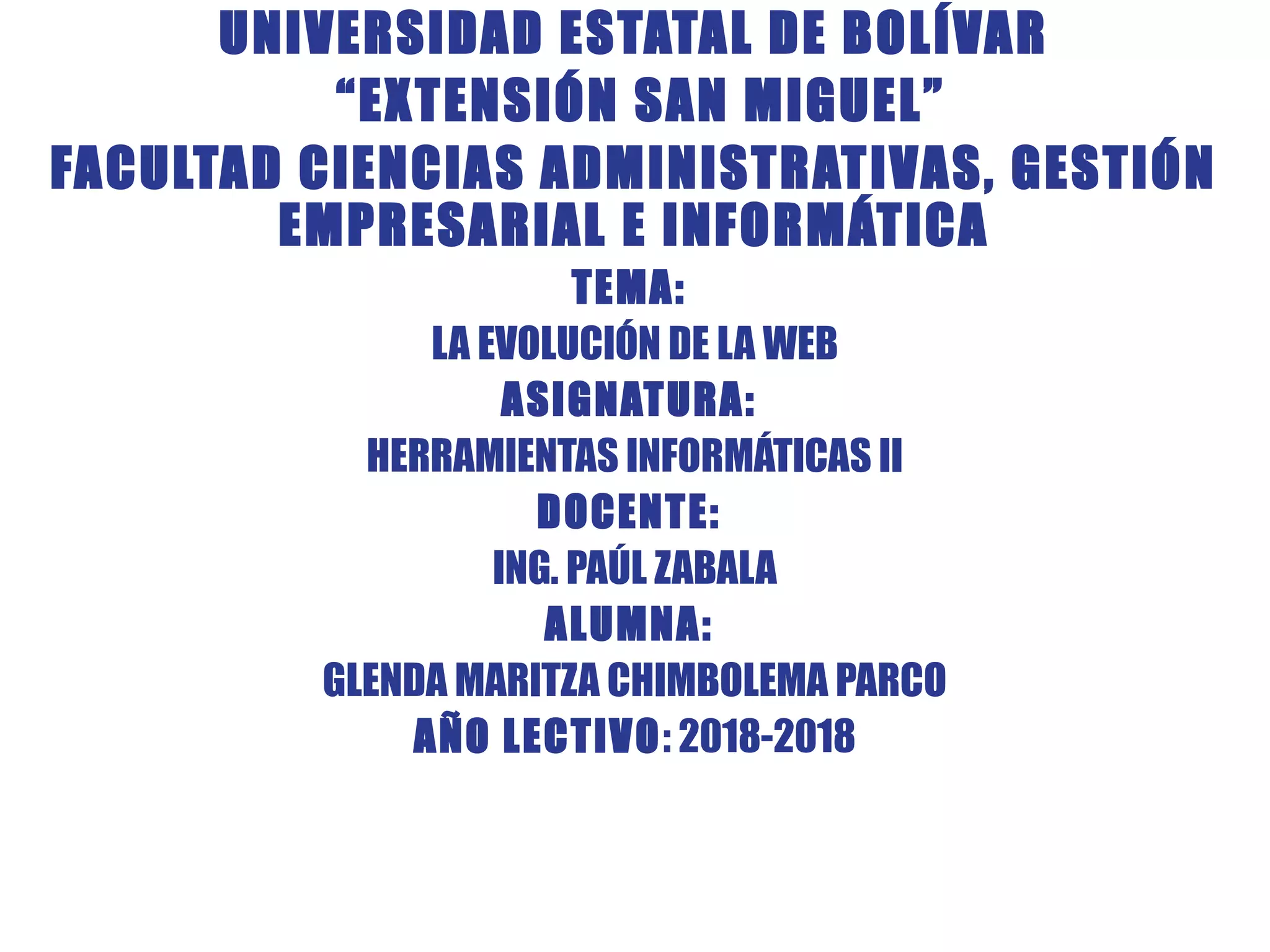 El documento resume las características de las diferentes versiones de la web desde la Web 1.0 hasta la Web 5.0. La Web 1.0 consistía en páginas web estáticas con poco contenido creado por usuarios. La Web 2.0 permitió una mayor interacción entre usuarios y contenido generado por ellos. La Web 3.0 se basa en una web semántica e inteligente. La Web 4.0 propone una interacción más personalizada con el usuario. Finalmente, la Web 5.0 permitirá interacciones sensoriales y emocionales mediante el uso de