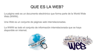 La Web ha evolucionado de una Web 1.0 estática a una Web 2.0 interactiva centrada en el usuario, y se espera que la Web 3.0 sea semántica permitiendo que las máquinas procesen automáticamente la información. Finalmente, la Web 4.0 integrará realidad virtual, inteligencia artificial y voz para crear agentes web que razonen como humanos.