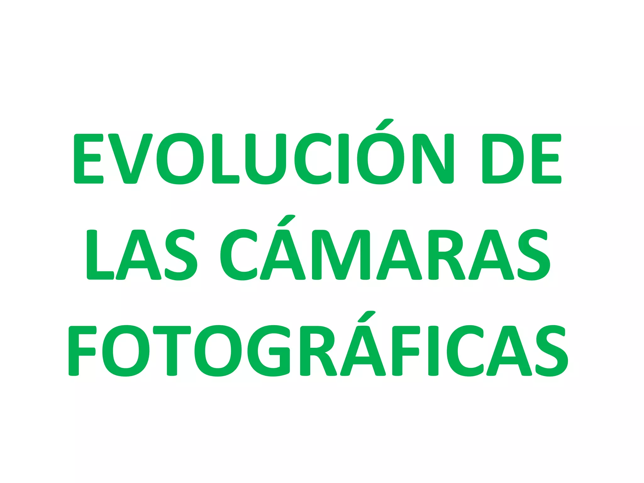 El documento resume la evolución de las cámaras fotográficas desde 1910 hasta 2008, mostrando modelos de diferentes países como Alemania, Francia, Italia, Estados Unidos y la Unión Soviética de cada década, desde cámaras manuales primitivas hasta cámaras digitales avanzadas del siglo XXI.