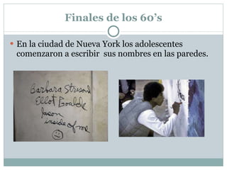 En las décadas de 1960 y 1970, adolescentes en Nueva York comenzaron a escribir sus nombres en las paredes y luego incorporaron imágenes populares como personajes de cómics. En los años 1980, la MTA de Nueva York luchó contra el graffiti mientras que el movimiento hip hop reavivó la cultura del writing neoyorquino, expandiendo y consolidando este arte callejero.