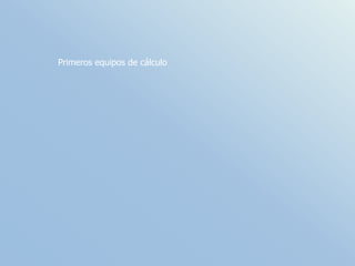 El documento resume la historia de los primeros equipos de cálculo y generaciones de ordenadores, desde el ábaco en la Antigüedad hasta los ordenadores cuánticos del siglo XXI. Describe las innovaciones clave como la regla de cálculo, la máquina analítica de Babbage, el uso de tarjetas perforadas, y el desarrollo de los tubos de vacío, transistores, circuitos integrados y microprocesadores que permitieron reducir el tamaño y coste de los ordenadores.