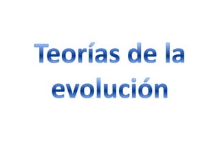 El documento resume las teorías evolutivas de Lamarck y Darwin. La teoría de Lamarck explica la evolución como resultado de la herencia de caracteres adquiridos por los organismos en respuesta a sus necesidades. La teoría de Darwin propone que pequeñas variaciones al azar entre organismos son el motor de la evolución, y que la selección natural favorece aquellas variaciones que mejor se adapten al medio.