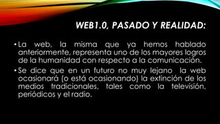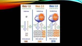 La Web 1.0 permitía solo lectura de contenido estático, mientras que la Web 2.0 permitió interacción e intercambio de contenido entre usuarios a través de sitios como Wikipedia, YouTube y Google. La Web 3.0 se centra en la inteligencia artificial y la web semántica. La Web 4.0 integrará la comprensión del lenguaje natural, comunicación máquina a máquina y el contexto del usuario.