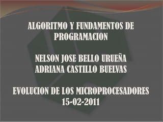 A través de los años, los microprocesadores han evolucionado desde los primeros modelos de 4 bits en los años 70 hasta los complejos procesadores multicore de hoy en día. El documento describe la historia y las mejoras clave de microprocesadores producidos por Intel y AMD, incluyendo el 4004 de Intel, el primer microprocesador comercial; el Intel Core i7 con múltiples núcleos; y el AMD Phenom II de 45 nm. La evolución constante de los microprocesadores ha impulsado avances en computadoras y tecnología.