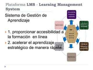 Este documento describe diferentes tecnologías didácticas como plataformas de gestión de aprendizaje (LMS), entornos personales de aprendizaje (PLE), redes sociales y la evolución de la web. Explica que las LMS proporcionan acceso a formación en línea y aceleran el aprendizaje estratégico, mientras que los PLE fortalecen el aprendizaje transversal y en red. También describe cómo las redes sociales permiten la interacción entre personas con intereses comunes y resume las diferencias entre la Web 1.0,