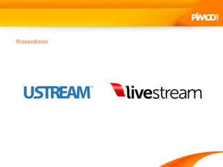 Este documento habla sobre proveedores de streaming como SCA Studio, PIMOD y Bambuser. También menciona la velocidad de internet en Uruguay y el sitio web Paralell Word.
