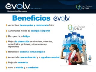 El documento resume la trayectoria de un empresario serial que ha creado 11 empresas, incluyendo la cuarta productora de etanol más grande de EE.UU. Describe una nueva compañía llamada EVOLV fundada en 2009 que ofrece suplementos nutracéuticos con más de 15 años de investigación científica. También presenta los diferentes paquetes y planes de compensación para participar en la compañía.