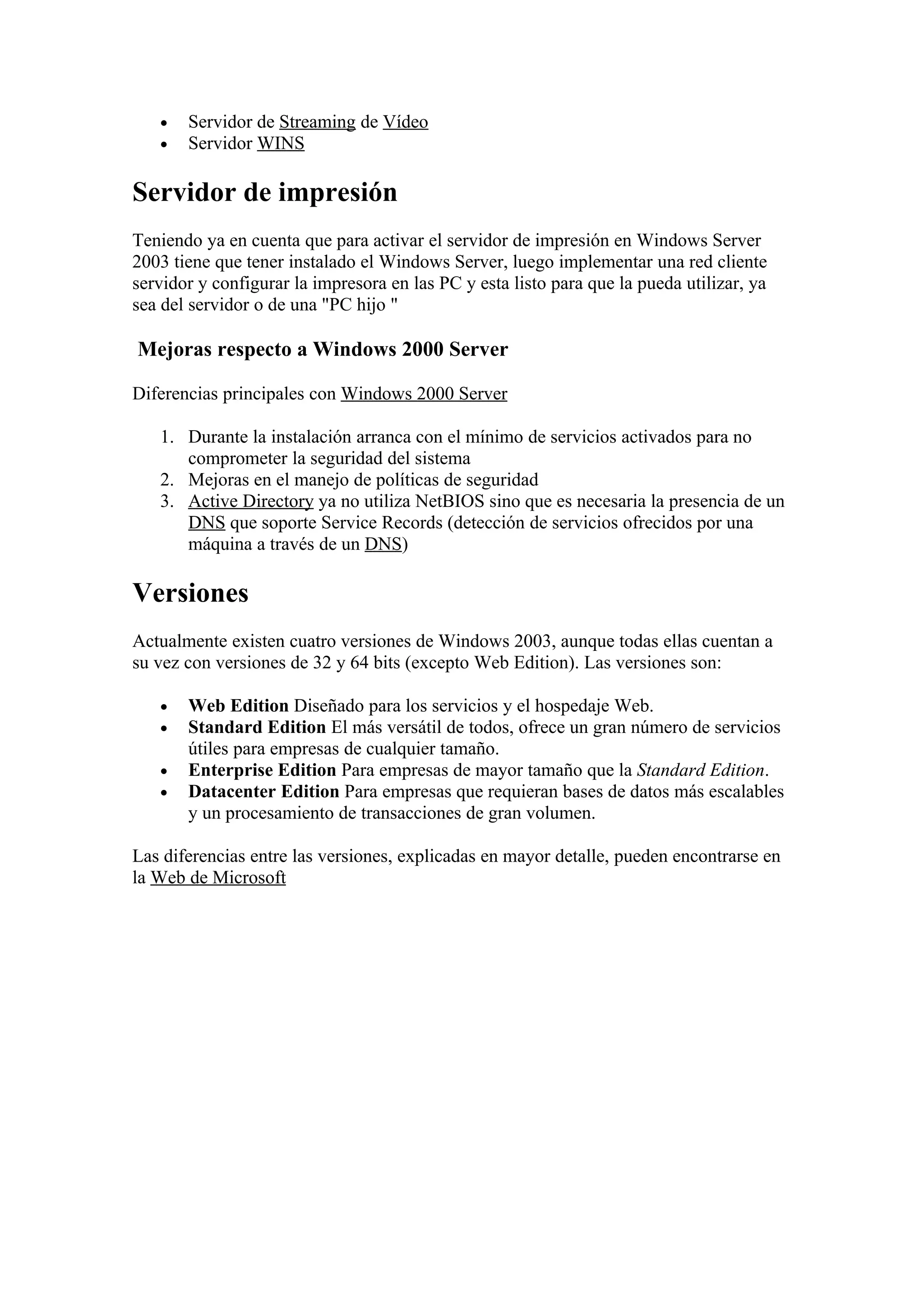 Windows Server 2003 es un sistema operativo de Microsoft lanzado en 2003 basado en la tecnología NT. Se caracteriza por estar optimizado para servidores con funciones de escritorio desactivadas por defecto. Incluye características como el sistema de archivos NTFS con cifrado y cuotas, Active Directory para gestión centralizada de red, y soporte para diferentes tipos de servidores como archivos, impresión y aplicaciones.