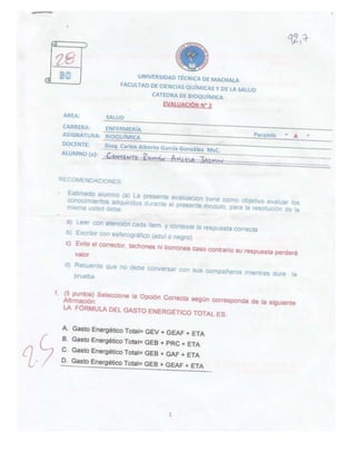 Este documento es una tarea extraclase de bioquímica para el primer semestre de la carrera de enfermería en la Universidad Técnica de Machala. La tarea fue realizada por Angela Contento para el profesor Carlos García y corresponde al segundo examen parcial del curso en noviembre de 2013 en Machala, Ecuador.