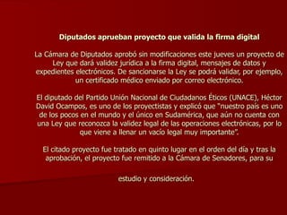 El documento resume varias noticias relacionadas con la tecnología y los medios de comunicación en Paraguay. Se aprueba una ley que valida la firma digital. ABC lanza el primer portal de noticias para teléfonos móviles. Mañana se inicia el PGX 4, una mega LAN party de varios días con competencias de videojuegos.