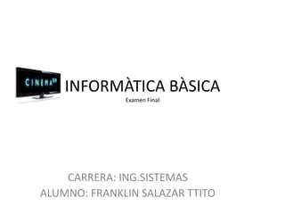 El documento presenta una introducción a conceptos básicos de informática como actores, casos de uso y hojas de cálculo. Define actores como entidades externas que interactúan con un sistema e incluyen roles como usuarios finales u otros sistemas. Explica que los casos de uso describen secuencias de eventos entre un actor y el sistema para una función específica. Finalmente, menciona hojas de cálculo como herramientas para realizar cálculos y promedios.