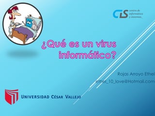 Este documento trata sobre los virus informáticos. Explica que los virus son programas diseñados para interferir con el funcionamiento de las computadoras, dañar o eliminar datos, o propagarse a otras computadoras. Los efectos de los virus van desde molestias menores hasta daños devastadores, y nuevas variantes surgen constantemente. Los virus se propagan cuando los usuarios comparten o envían archivos infectados inadvertidamente. El documento también discute formas de prevenir infecciones virales a través de la precaución y el uso de software antivirus.