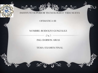 Este documento presenta información sobre varios temas relacionados con Ecuador, incluyendo: 1) La historia del país en 1830, cuando Juan José Flores asumió el poder como primer presidente y se expidió la primera constitución. 2) Breves descripciones de la ciudad de Azogues, las Islas Galápagos y la provincia de Esmeraldas. 3) Un párrafo sobre cómo Ecuador es conocido por su diversidad de aves y oportunidades para observación de aves. 4) Un reportaje sobre especies amenazadas o en peligro de extinción en
