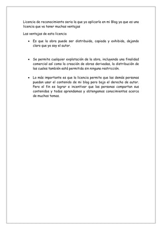 Este documento presenta la información personal y académica de Andrea Stephanie Campoverde Armijos, una estudiante de medicina en la Universidad Técnica Particular de Loja. Incluye enlaces a las cuentas de Andrea en Flickr, YouTube, SlideShare y un blog en Blogspot. También resume las ventajas de aplicar una licencia de Creative Commons que requiere el reconocimiento de la autoría.