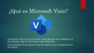 Microsoft Visio es un software de Microsoft para crear diagramas de flujo, organigramas, mapas conceptuales y otros tipos de diagramas de manera fácil. Se puede usar para diseñar procesos de negocios, flujos de trabajo y estructuras organizacionales. Originalmente se enfocaba en planos de ingeniería y arquitectura, pero después de ser adquirido por Microsoft, su enfoque cambió a diagramas para negocios.