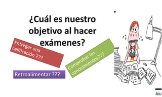 Este documento describe diferentes tipos de evaluación y reactivos para exámenes. Explica que existen tres tipos principales de evaluación: diagnóstica, formativa y sumativa. También describe diferentes tipos de reactivos como selección múltiple, verdadero/falso, completación, identificación y preguntas directas. Finalmente, ofrece consejos para la elaboración de exámenes en línea, incluyendo la adaptación de algunos reactivos para que sean calificados automáticamente.